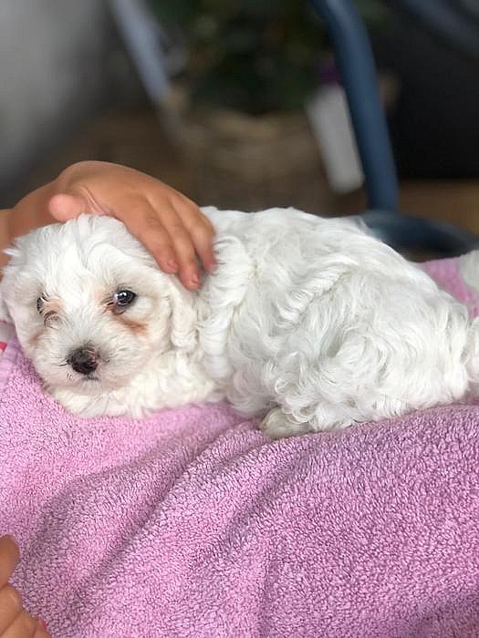 Prodám štěnata maltézáčka fenky.Odčervená, čipovaná, očkovaná.Narozená 21.6.2021