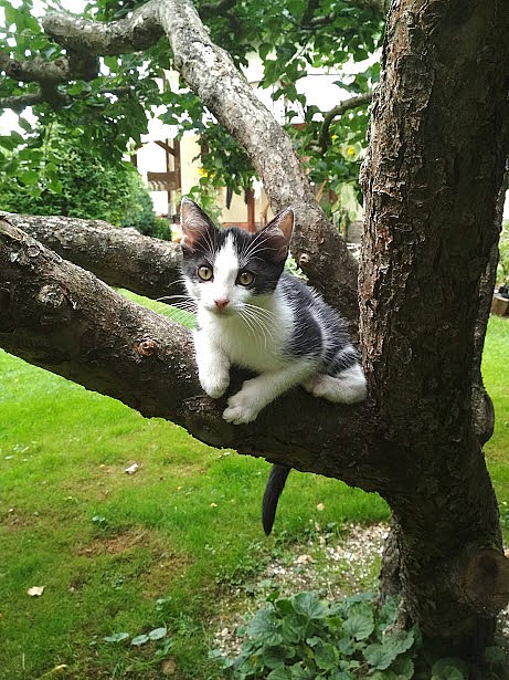 Asi půlroční kocour, hodný, ale v kontaktu s cizími lidmi opatrný, ošetřený proti parazitům, rozvakcinovaný. Tel.: 777214680