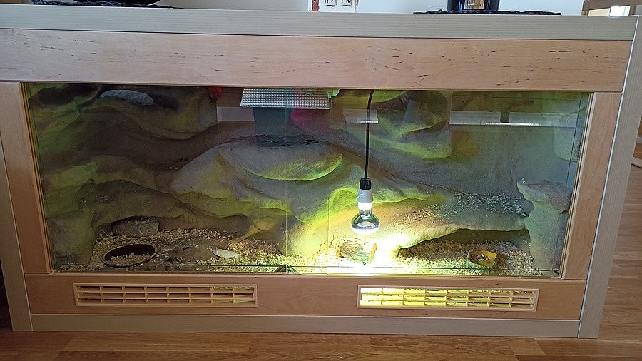 Terárium po hroznýši, 100x50x50cm. Zadní a boční stěny 3D, přední sklo, zabudované světlo. Pro více informací mě kontaktujte, klidně zašlu více foto i...
