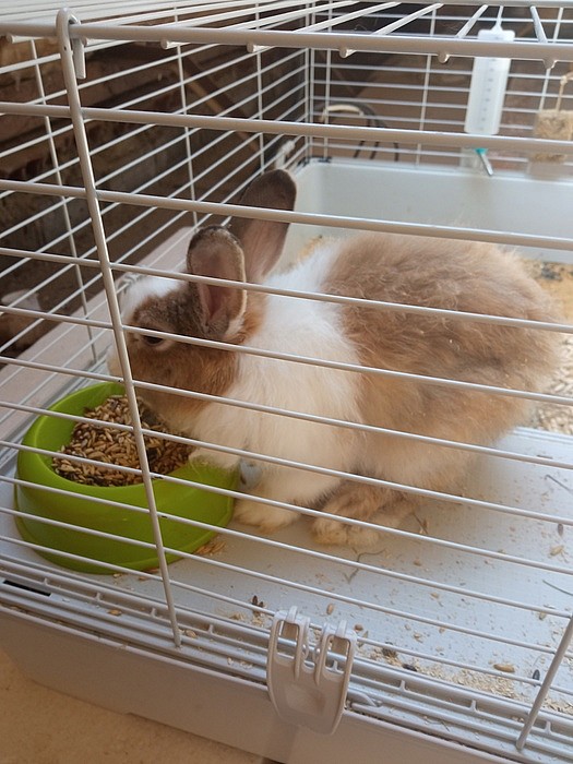 stáří rok a půl, nekastrovaná, po mláďatech, uvolňují ji z chovu z důvodu redukce, je hodná, nekouše, nechá se hladit, chodí na králičí WC, barva modrá perlová,...