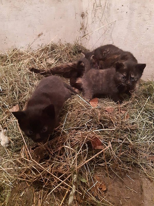 Jednotlivě i společně. Dvě kočičky (černá, zrzavočerná) a kocourek (šedý, mourovatý). Jsou mazlivá, nebojí se ani lidí ani psů. Narozeny začátkem června. Odběr cca 14.7.2022. mob.: 604 754 690