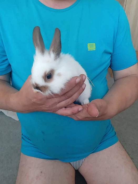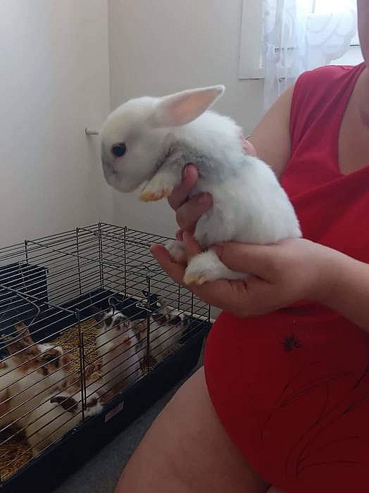 stáří rok a půl, nekastrovaná, po mláďatech, uvolňují ji z chovu z důvodu redukce, je hodná, nekouše, nechá se hladit, chodí na králičí WC, barva modrá perlová,...