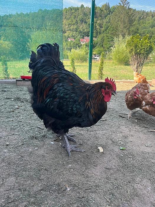 Velmi krásný kohout Orpington na prodej. Jeden rok starý. Má krásné dlouhé peří a hluboký zpěv, je zdravý a dobře vychovaný, není agresivní, hlídá slepice, žere všechno. Prodáváme, protože máme dva kohouty a potřebujeme pouze jednoho