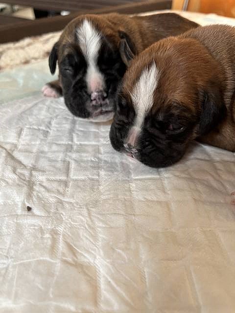 Prodám štěňata německého boxera s PP po výborných rodičích. Otec Willi Jisuko,český a slovenský šampion,národní vítěz,junior šampion, 14xCAC, 7xCACIB, CACK,výborný. Matka Cora Jafiko, V1 CAC, výborná. K odběru jsou pejsci i fenky zlaté s bílými znaky a dvě štěňata bílé barvy. Štěňata budou 3x odčervená, očkovaná, čipovaná, s europasem. K odběru začátkem listopadu. Cena dohodou,jen vážní zájemci.