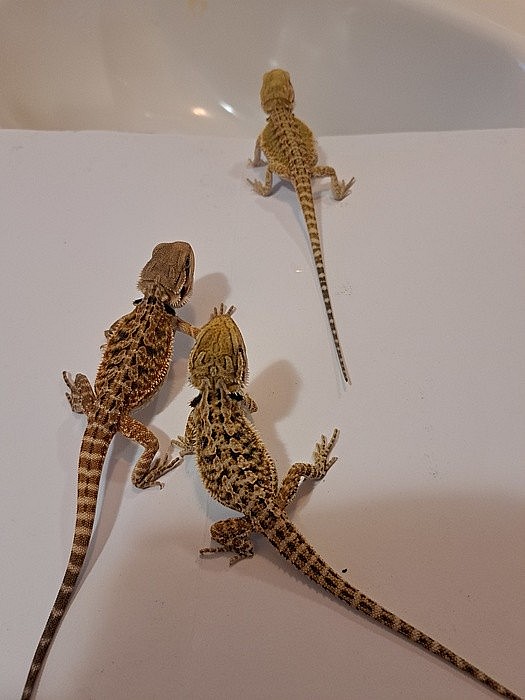 Dobrý den. Prodám agamky staré tři měsíce. Jsou to samečci, rozkrmení, vitální a bez vady. Klasic za 900 Kč. Leatherback 1200 Kč.