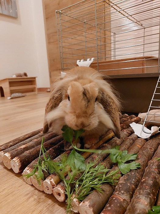 Bohužel ji musím věnovat, jelikož původně jsme ji pořizovali jako kamarádku k prvnímu kraličkovi. Vzhledem k přílišné aktivitě Bublinky vůči prvnímu králíčkovi je to pro další setrvání pro oba dva nevyhovující a naopak frustrující a musime je z klece poustet na střídání.