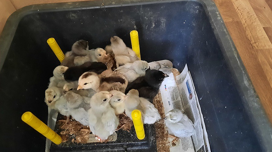 6 levandulových slepic a 6 barevné slepičky araukan .