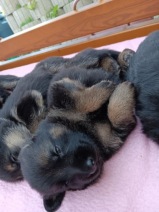 Prodám štěňáta Německého ovčáka bez PP. Matka bez PP, otec s PP,jsou klidné, učenlivé povahy. Štenatka budou 3x odčervená, očkovaná. Štěňátka budou k odběru koncem června 2023. Inzerát platí do smazání.
