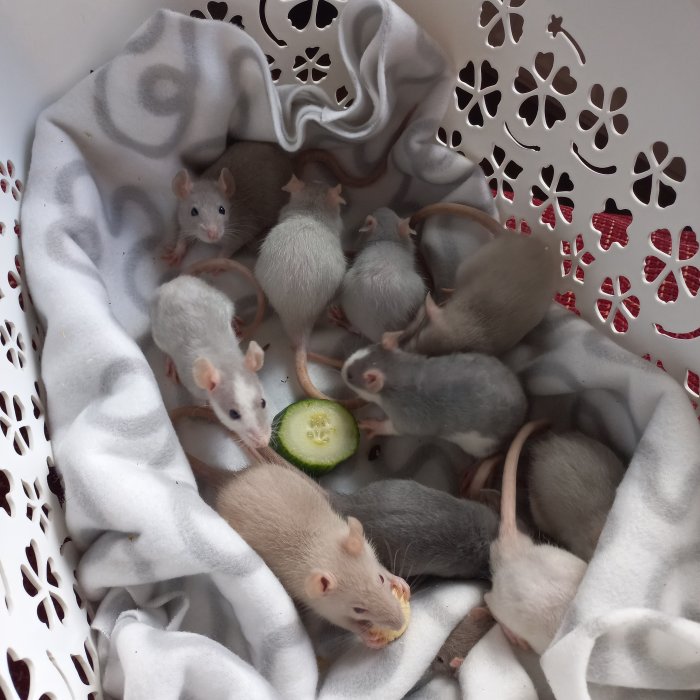 Nabízím k prodeji mláďata potkánků (3 samečky, 8 samiček), narozená 24.5.2023. Jedná se o plánovaný vrh a jejich rodiče nejsou příbuzní. Jsou vymazlení, velmi přítulní a zvyklí na každodenní kontakt. Zbarvení srsti je husky, šedá a světle šedá, ouška mají standart nebo dumbo. Předání je možné v Praze nebo v Kostelci nad Labem