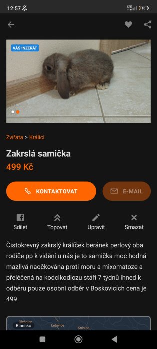 Prodám zakrslé samičky i samečky beránky, krátkouché králíčky obyčejné zakrslé a teddy pouze osobní odběr v Boskovicích cena od 200kč max do 600kč jsou očkování a přeléčení na kodcikodiozu velký výběr králíčku stáří okolo 6 až 8 týdnů