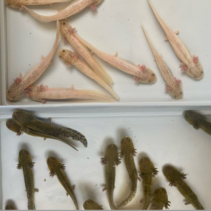 varianty: růžoví s kropenatou hlavou a hnědo-zelení