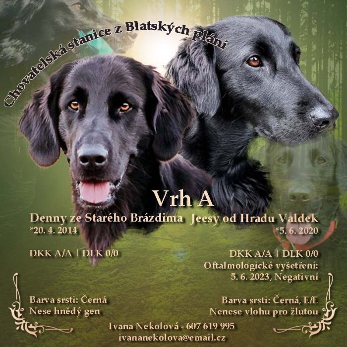 V chovatelské stanici z BLATSKÝCH PLÁNÍ očekáváme narození štěňátek Flat Coated Retrievra s průkazem původu.