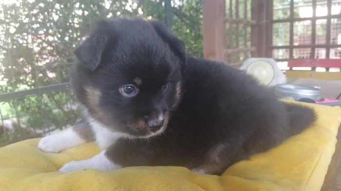 Nabízím k prodeji krásná štěňata Pomchi bez PP. K dispozici je 6 pejsků - všichni převážně černé barvy , dva mají bílou náprsenku a jeden je v kombinaci černo -...