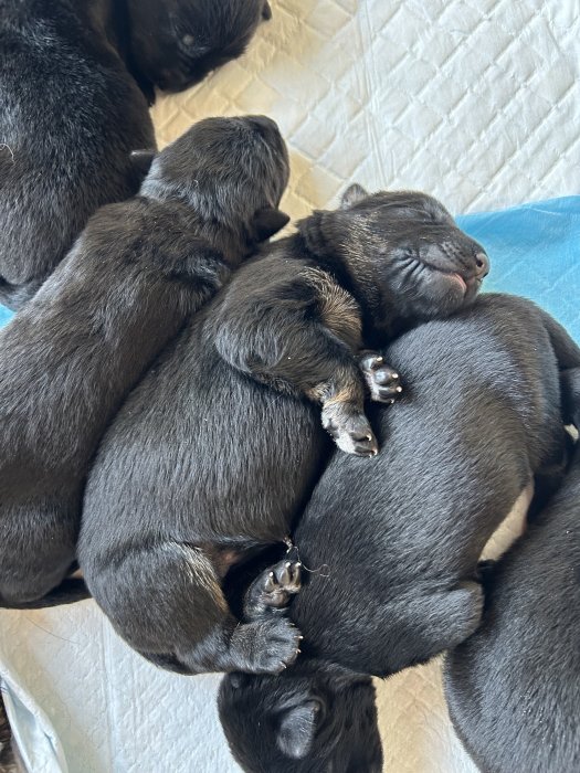 Nabízíme čistokrevná štěňata Německého ovčáka (černá ). 4 fenka a 3 pejsky. Odběr možný v první půlce října. Štěňata budou odčervena a očkována.