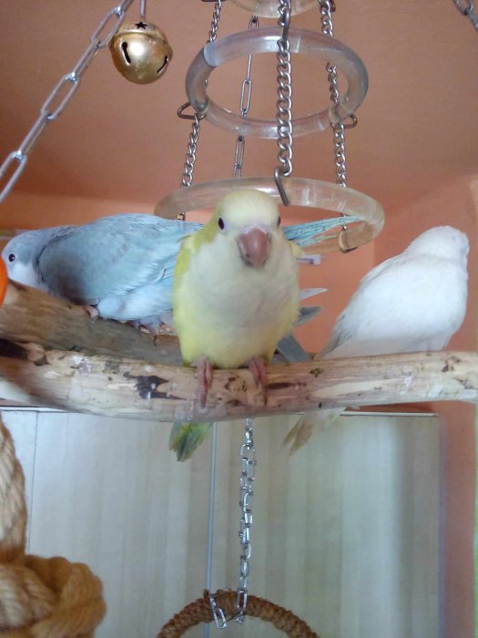 Nabízím k odběru mláďata Mníška šedého v mutaci palid, odchov pod rodiči doma v bytě, vhodní na ochočení i do chovu.