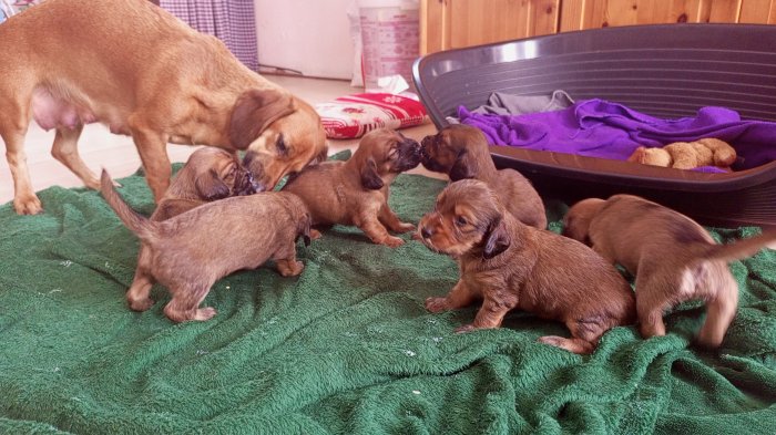 Narodili jsme se 26.7.2023 a k novým páníčkům a paničkám můžeme odejít nejdříve 20.9.2023 Musíme vás upozornit, že jsme malá štěňátka z domácího prostředí, z milující lidské rodiny s dětmi. Nejsme psi k boudě.... Zahradu uvítáme a pohodlný gauč by se také hodil. Rádi budeme běhat po lese a na zahradě pomůžeme s hrabáním děr. Lidi máme rádi a stejnou lásku očekáváme i od nich.