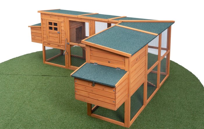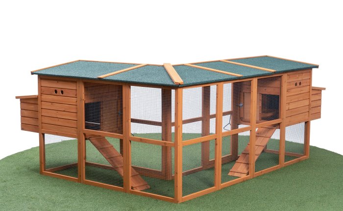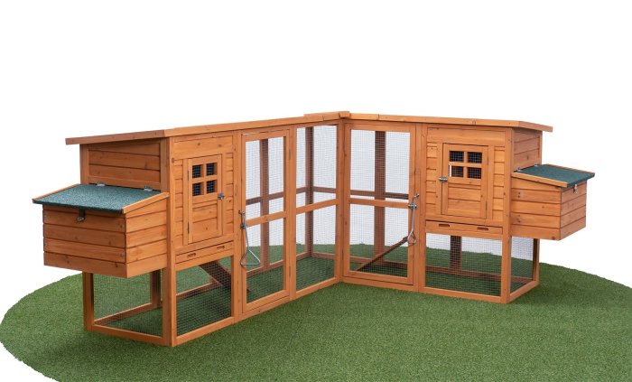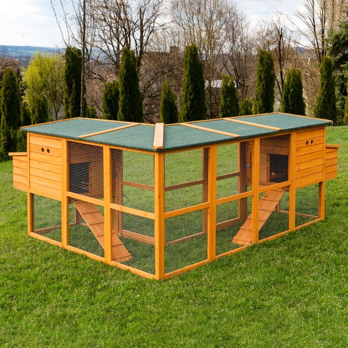 Prodám Mobilní kurník s výběhem KK13 XXL je atypický dřevěný kurník do tvaru "L" vhodný je až pro 10 slepic(v závislosti, dle druhu / velikosti). Vhodný i pro chov většího počtu křepelek, různé jiné drůbeže, či hlodavců! Díky tvaru do "L" je vhodný pro umístění do rohu nebo do volného prostranství.