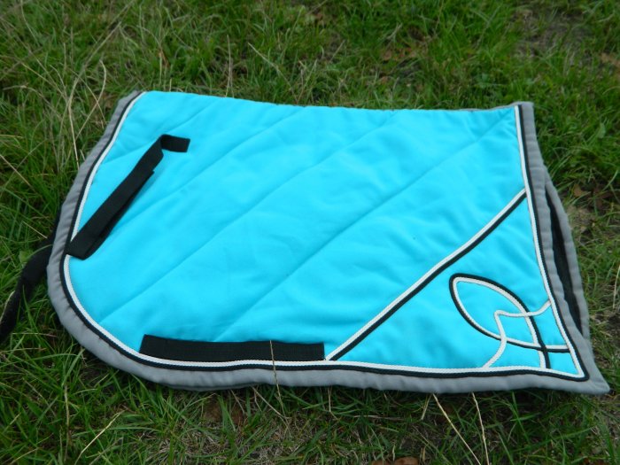 Prodám nenošenou doma šitou podsedlovou dečku pod skokové sedlo ideálně s posedlím 17 a méně. Pod 17,5 je malá. Krásná tyrkysová barva. Žádné fleky. Slabší materiál. Na koni vypadá moc hezky. V případě zájmu přeměřím. Cenu nabídněte nemám pro ní využití. Při odběru více věcí dohoda o ceně možná