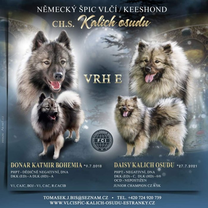 nabízí štěňátka německých vlčích špiců s PP po vyšetřených rodičích s vyrovnanou povahou. Pejsek Elias a fenka Elsie mohou odejít do nových domovů v polovině září. Na cestu mají sbalený startovací balíček a samozřejmostí je chovatelský servis pro nové majitele.