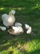 Hedvábnický bílé odchované pod kvočnou. Možno dovést do Přerova na burzu 10.9. Mobil 728 870 369