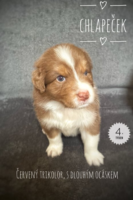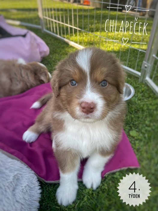 Čtyři štěňátka australského ovčáku bez PP (oba rodiče s PP) narozená 5.8.2023 hledají své domovy.