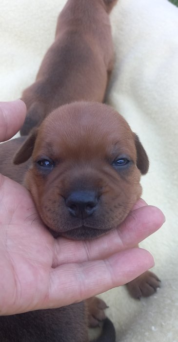 Štěňátka Stafordšírského bulteriera s PP, červená barva s bílými znaky, jen pejsky. Odběr možný koncem října nebo po domluvě.