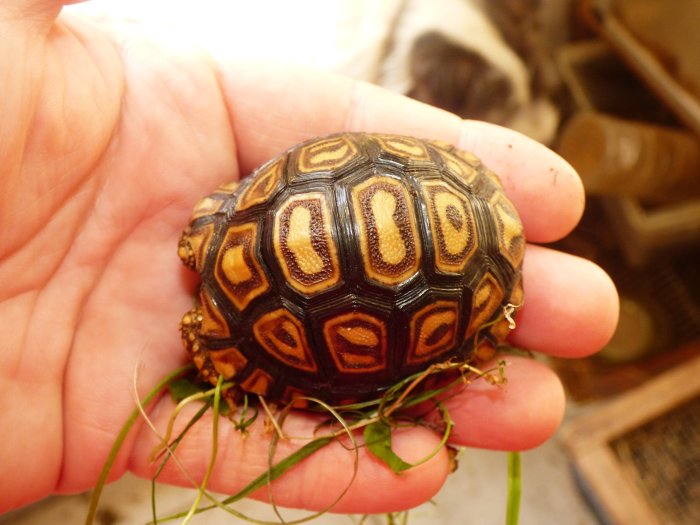Prodám krásná mláďata želvy pardálí (Stigmochelys pardalis babcockii). S chovem poradím. Po domluvě možné i terárium a vybavení. Pouze osobní odběr. Více info tel: 723690892 (NE SMS)