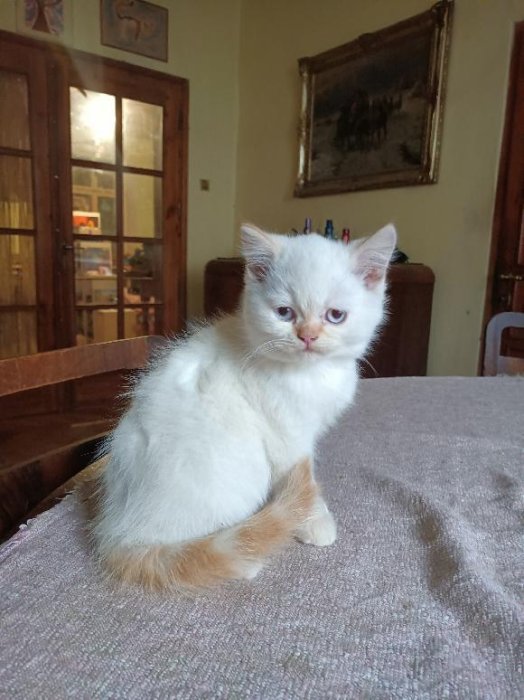 Britská krátkosrstá koťátka bez PP, narozená 22.6.Oba jsou kocourci.Vzácné zbarvení bílá - se žlutým ocáskem a oušky (colorpoint).Koťátka i jejich matka žijí s námi v bytě, jsou zcela vymazlená. Chodí na kočičí WC. Jsou krmená syrovým masem, kvalitními granulemi, bílým jogurtem, vejci a doplňky potravy.Aktuální váha 1,5 kg. Pravidelně odčervovaná a ošetřená proti blechám. Hledáme pro ně zodpovědné a laskavé páníčky, u nichž budou členy rodiny.