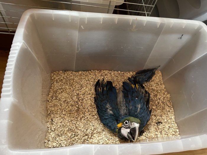 Prodám vymazlená mláďata Ara ararauna od dvou nepříbuzných párů. Berou měkká krmiva. Stáří více jak 80 dní - již mimo inkubátor.