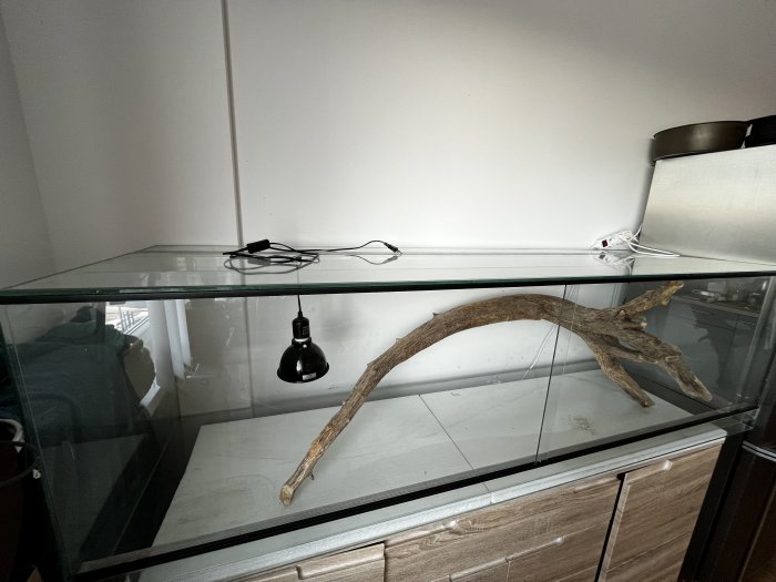 Skleněné terárium výšky 100 cm, včetně UV a infra lampy.