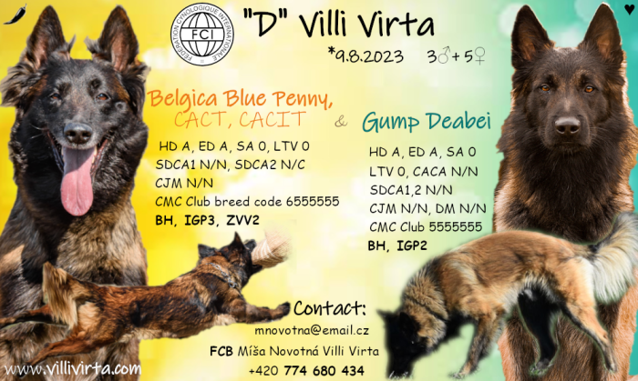 Otec Gump Deabei, RTG HD A, ED 0/0, SA 0, LTV 0, SDCA1 N/N, SDCA2 N/N, CJM N/N, CACA/CA4-N/N, DM N/N , bonitace CMC PT 5555555/-, zkoušky - BH, IGP2.