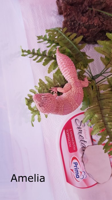 Co se Amelie týče, ta je nejklidnější a když jsem na ně měla víc času, byla zvyklá i do ruky a mohla jsem s ní chodit po domě. Teď už na chování zvyklé nejsou, ale zase to jde rychle naučit. Jako mazlíček by z téhle trojice byla nejvhodnější. Je i hodně aktivní a leze po svých umělých rostlinách a občas i skáče do výšky, když vidí, že jí nesu v pinzetě červa.