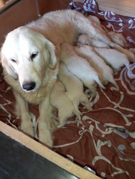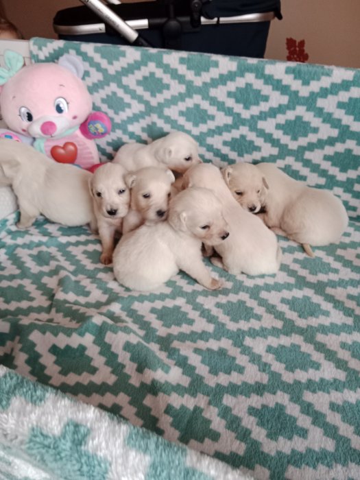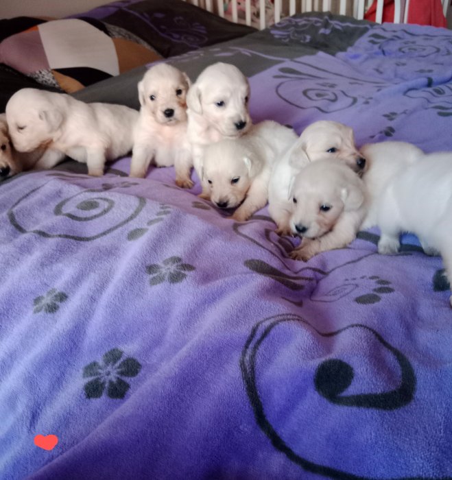 Ahojte jsme čistokrevní zlatý retrívři bez PP. Narodili jsme se 14.9.2023. Je nás sedm, tři holčičky a čtyři kluci. Jsme od narození pod přísnou kontrolou a pravidelně odcervovani. Naší panicci pro nás hledají nové hodné a milující rodiny. Při odběru budeme veterinárně zkontrolovani, očkovaný a čipovaný. Sebou si odneseme očkovací průkaz s čipem a granulky do začátku. K odběru budeme druhý týden v listopadu.