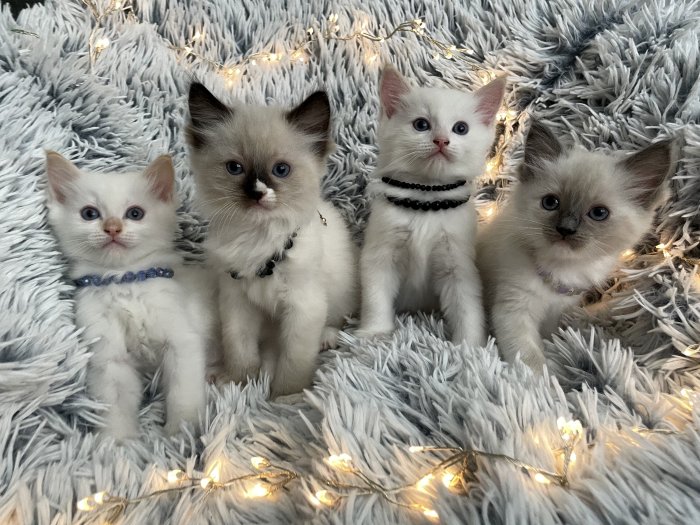 Jen do milujících rodin odhodlaných jim věrně sloužit, nabízíme koťátka ragdoll bez P.P. Narozena 24.8. Poctivě rozmazlováná, vyrůstajicí v úzkém rodinném kruhu. Zvyklá i na pejska.Vyhledávají kontakt a mazlení. Umí používat záchůdek. Papkají kvalitní granulky Applaws a vařené masko. Volná jedna kočička a dva kocourci. Koťátka půjdou do nových domovů odčervená a naočkovaná. Nové majitele pečlivě vybíráme a nezávazná návštěva je samozřejmě možná. Odběr našich mazlíků je ve dvanácti týdnech. Přibližně druhý listopadový týden. Poslední foto maminka koťátek. Tel: 737844829, 604182788 Prosím ne sms.