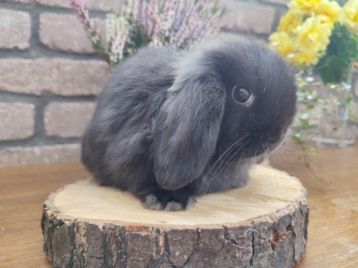 Poslední samička k rezervaci , je hodně zvědavá, kontaktní,bude menšího vzrůstu ,otec má pouhé 1 kg, oba rodiče u nás k vidění.Odběr koncem října.Bude přeléčená proti kokcidióze.