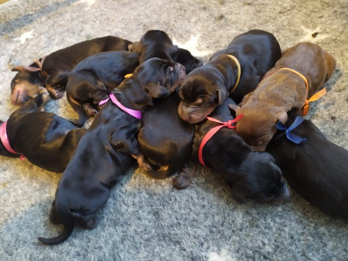 17. 10.2023 se narodil vrh I - 5 černých fenek, 3 černí psi a 1 hnědý pes.