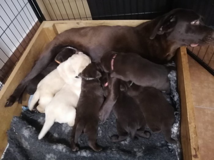 Prodám nádherná čistokrevná štěňátka labradorského retrivra bez PP. Barva čokoládová a bílá.Odběr polovina listopadu kdy budou štěňátka řádně naočkovaná ,čipovaná a odčervená.