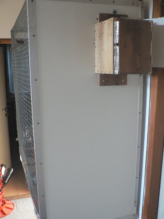 Klec na kolečkách o velikosti 65x54x140cm (ŠxHxV) - vnitřní prostor; vnější výška klece je 152cm, 1 velká dvířka, potom menší dvířka - 2x jedna strana, 1x druhá...