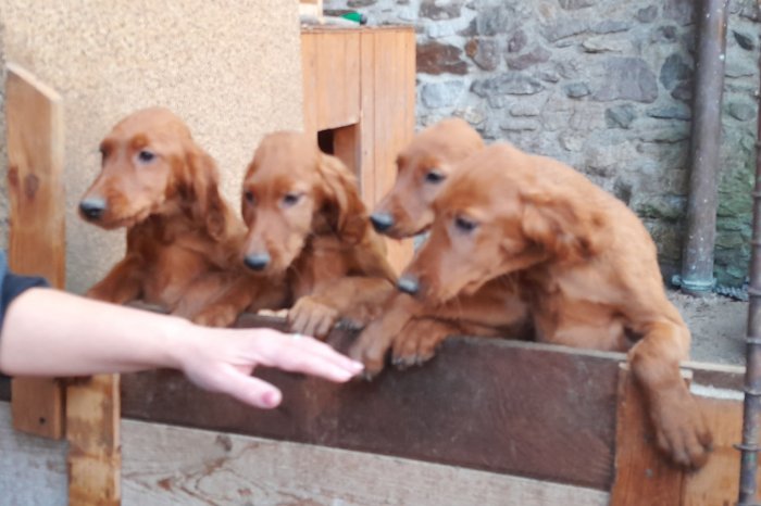Prodám štěňata Irského setra. Matka bez PP, otec s PP. Odčervená, očkovaná. K odběru ihned. Poslední foto otec.