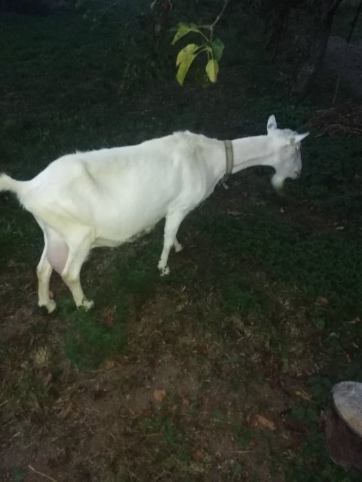 Prodám bílou bezrohou kozu. Dojí dva litry chutného mléka denně.