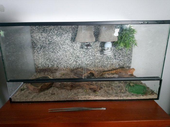 Skleněné terárium výšky 100 cm, včetně UV a infra lampy.
