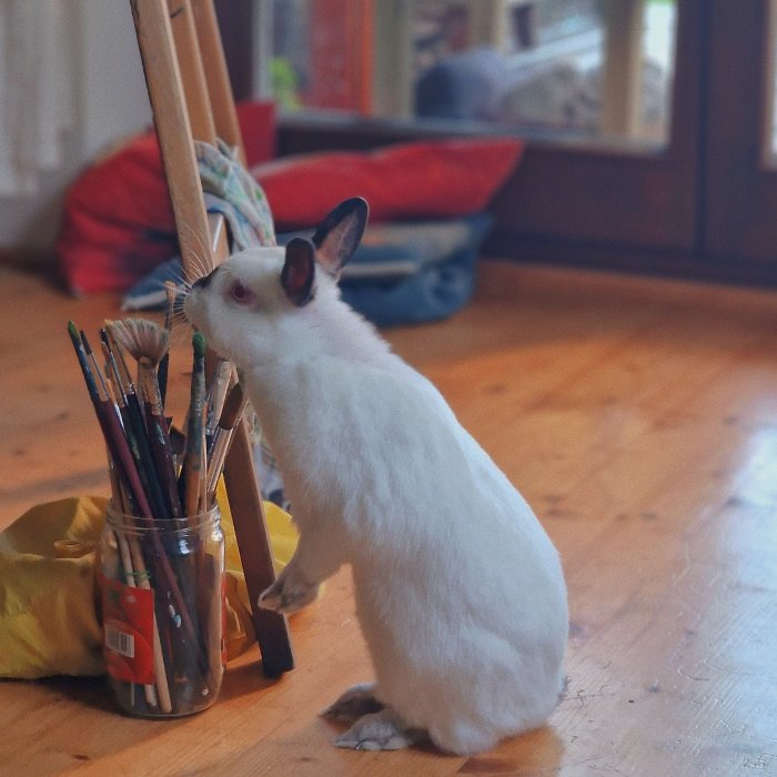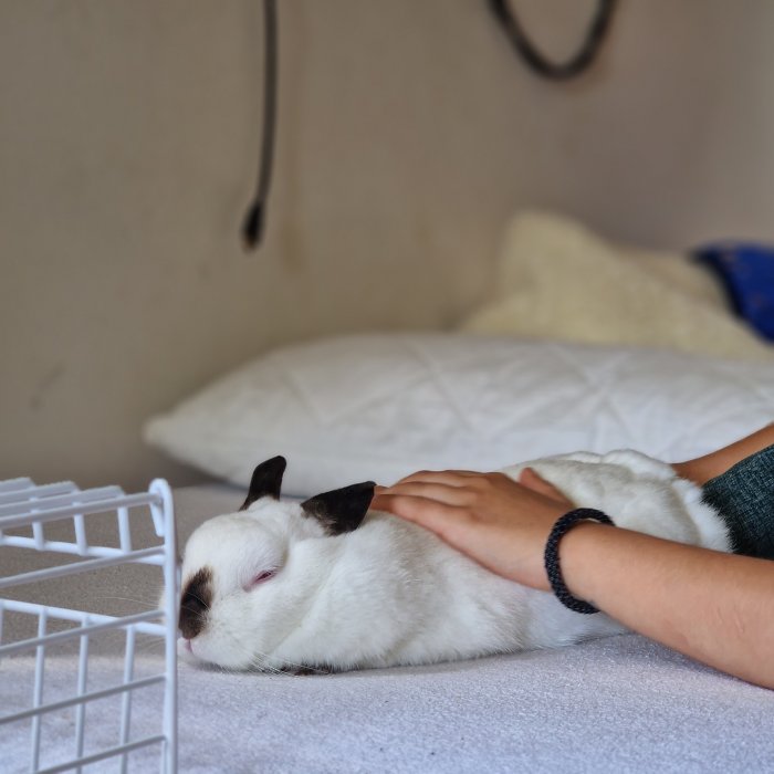 s těžkým srdcem nabízím k adopci -za odvoz- milovaného králíčka Banksy, je to kalifornský králík. milujeme ji, ale bohužel máme pocit, že ji u nás není tak dobře jako by mohlo být s někým kdo má větší zkušenosti s chovem králíčků. je zdravá a hodná, avšak nedoporučuji ji k dětem, Banksy k nám přišla z neznámého prostředí a tak se někdy vzteká. králíčka daruji samostatně tak poprosím dovézt si na převoz přepravku.