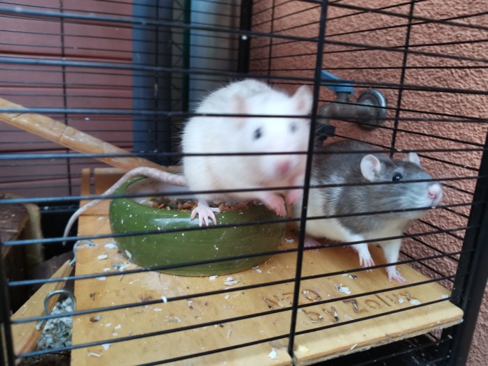 Daruji dvě potkaní samice zhruba rok staré, může být včetně poškozené klece (s dřevěnými patry, napáječkami, miskou a domečkem, plastová spodní část má velkou opakovaně opravovanou díru). K dispozici v Brně Slatina.
