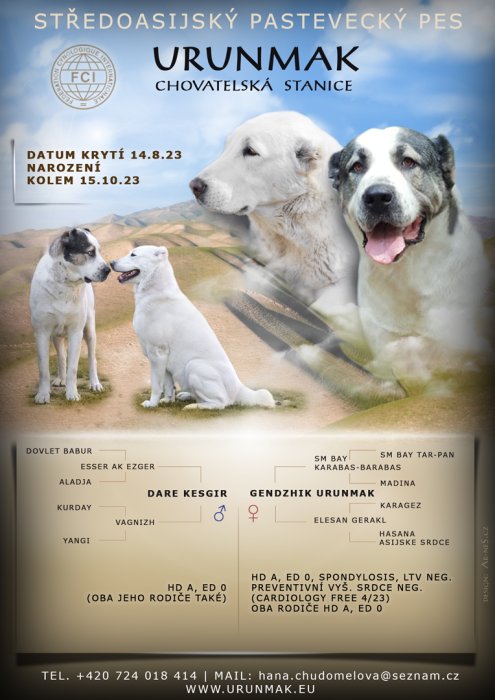 zadáme štěňátka s PP po zdravých, výborných rodičích s vyrovnanou povahou. Oba rodiče psa import, matka z krytí v Rusku, jediné po tomto psovi v ČR, SK i jinde. Vhodná i na chov, ale zejména jako rodinný hlídač. Uvítáme nezávaznou návštěvu, odběr možný od 8.12..