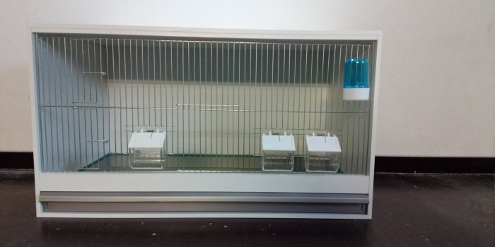 Prodám dvě klece pro andulky ( 44 x 51 x 28 ). Plus veškeré vybavení ve skle, nerezu, dřevo. Pítka, krmítka, houpačky, žebříčky.