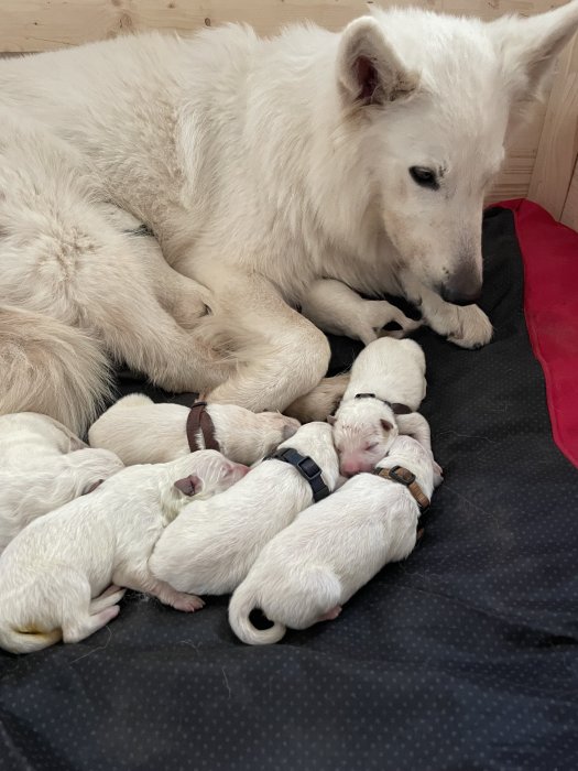 Od poloviny února k odběru 7 pejsků a 3 fenky bílého švýcarského ovčáka s PP. Narození 17.12.23