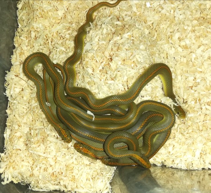 Prodám odchov 3ks Korálovky sedlaté mex cambeli. Narozena září, samostatně přijímají potravu(rozmr. holata). Vel. cca 30cm, v dospělosti cca 120cm. Zajímavě zbarvený...