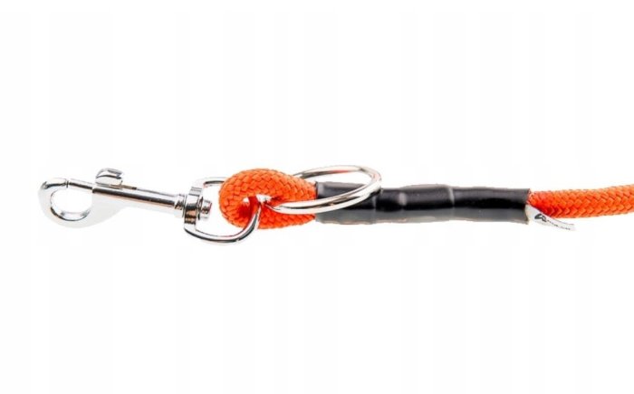 Krásné, nové, nepoužité, lanové vodítko o délce 3 m, síla cca 12 mm, viditelná oranžová barva.