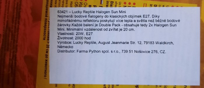 Vyhřevná lampa (Repti planet) s výhřevnou žárovkou (Lucky reptile Halogen Sun Mini e47 20W)