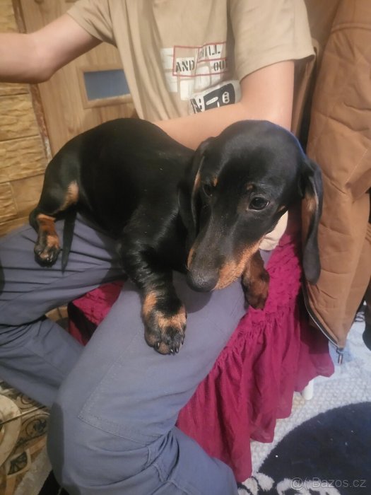 Prodám krásné štěňatka jezevčíka černo pálené kratkosrsta mají 20tydnu jsou odčervena cena 6499kc